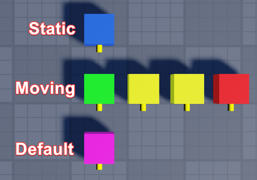 By default, static cameras are blue and moving cameras are green-yellow-red. This colouring is optional. You don't need to follow it.