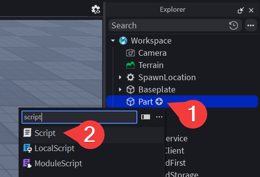 Now add a Script and a ClickDetector to that part by selecting the + button next to that part in the explorer and adding those things.