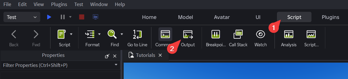 Go to the Script tab in Roblox Studio and press the Output button.