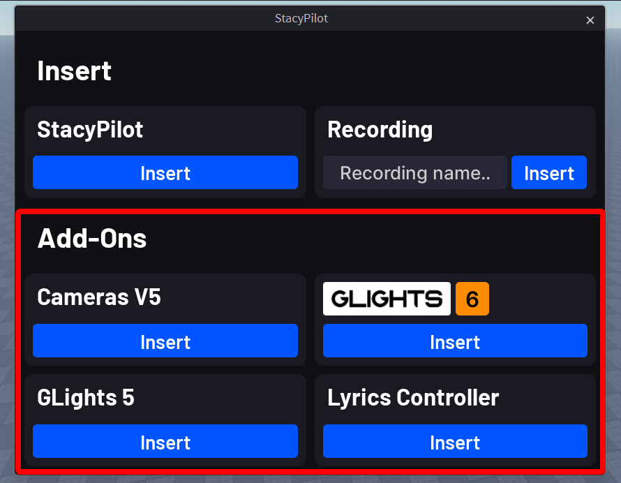No special setup is required to record the Camera System. Please note that the cameras add-on will not record drone movement.