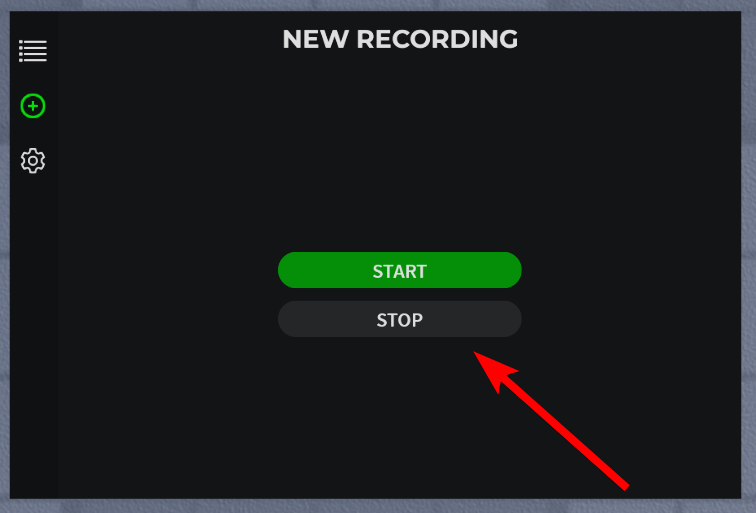 To actually create a recording, go to the New recording section (plus icon on the left), then press the Start button. StacyPilot will start measuring time and will listen for any actions from add-ons. You can do everything you want to record now.