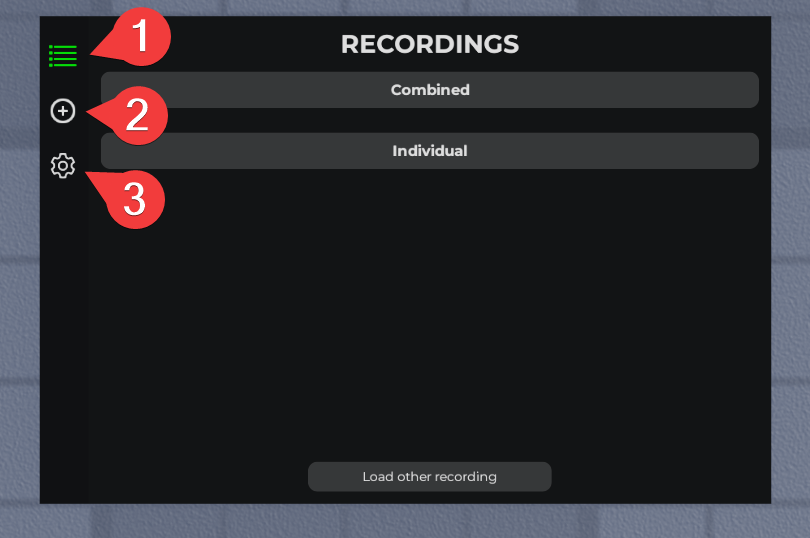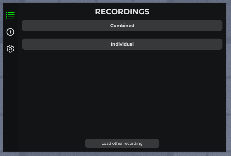 The recordings list will shows all recordings currently inserted into the game. There's a list of "combined" recordings and a list of "individual" recordings.