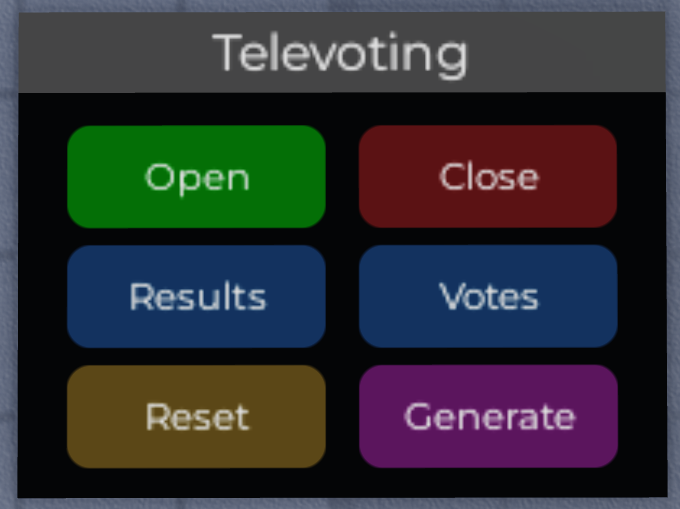 When you're in game and whitelisted to control the panel, you can press the Open button to start the voting and the Close button to end the voting. The Televoting topbar will turn green when the voting is open.